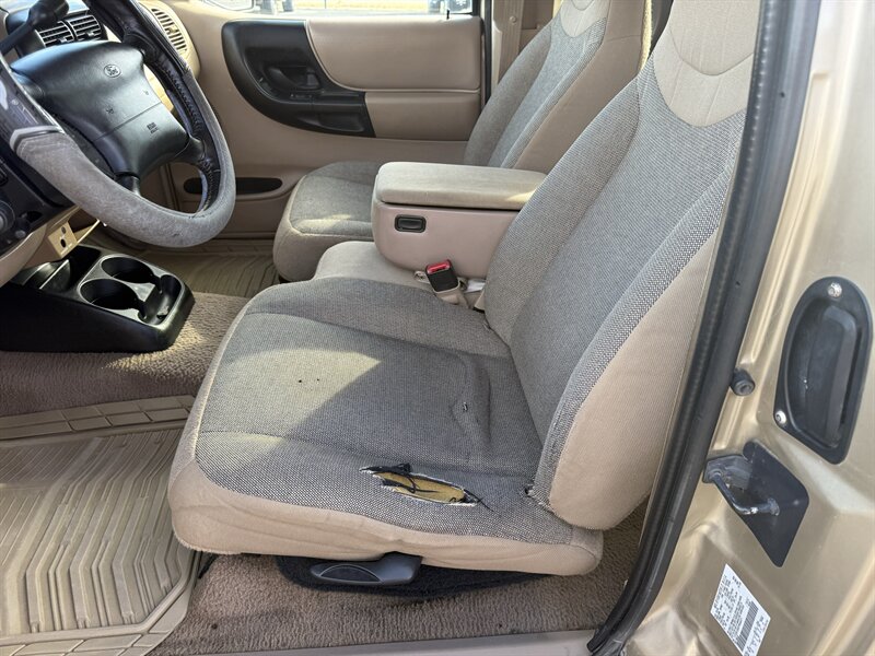 2000 Ford Ranger XLT de 2 puertas con el motor de fábrica 4.0L V6 (160 hp, 225 lb-ft). El equipo de fábrica incluye aire acondicionado, radio AM/FM con casete, asientos de tela, elevalunas y cierre de puertas eléctricos, control de crucero, volante ajustable, consola central y cuadro de instrumentos completo, y bolsas de aire frontales dobles. Menos de 189,000 millas (promedio inferior a 7,000 millas por año), en excelente condición general y con informe CARFAX limpio.