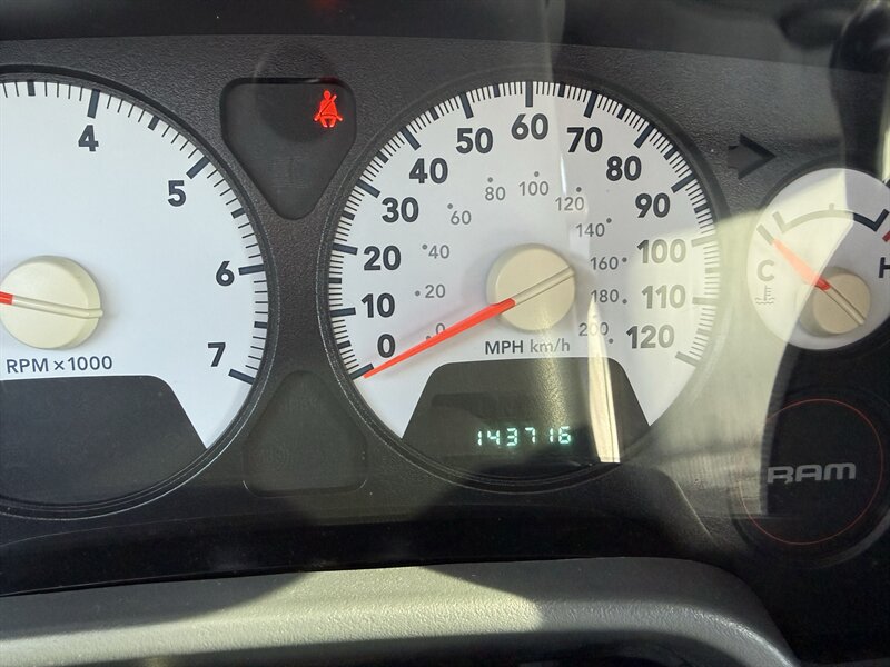 2008 Dodge Ram 1500 ST powered by a 4.7L V8 (310 hp, 330 lb-ft). Excellent overall condition with under 144,000 miles (averaging less than 8,000 miles/year) and a clean CARFAX. Factory-standard equipment typically includes durable cloth or vinyl bench seating for three, manual or power HVAC, AM/FM stereo with CD player, tilt steering column, cruise control, power steering, analog instrument cluster with basic trip computer, steel wheels, full-size pickup bed with tie-downs, trailer-tow prep, anti-lock brakes (ABS) and front airbags (with front seat-mounted side airbags on many builds). Some convenience items (power locks/windows, upgraded audio or towing packages) were available as factory options depending on original configuration.