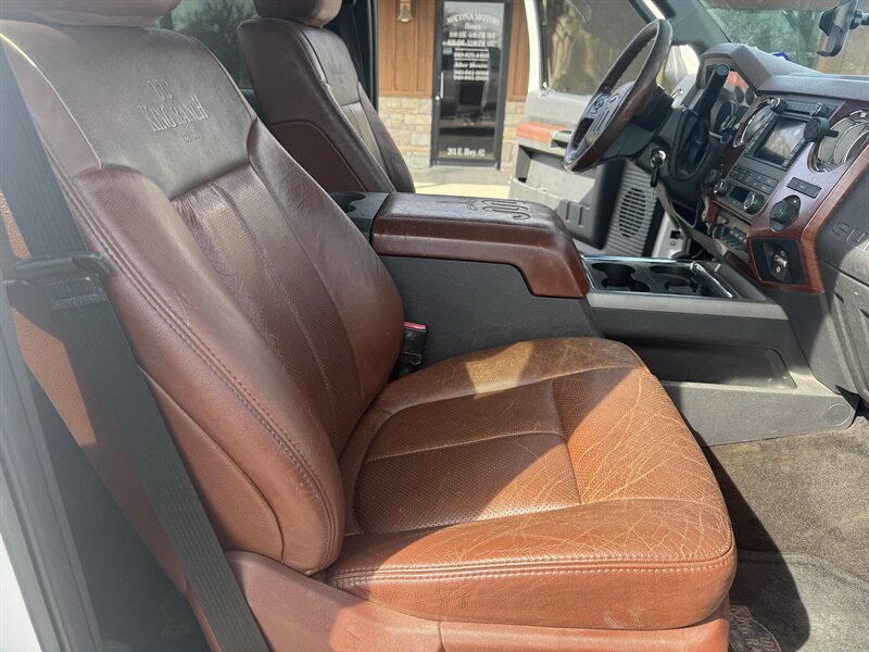 This 2012 F-450 King Ranch is equipped with the Power Stroke 6.7L turbodiesel V8 (rated at approximately 400 horsepower and 800 lb-ft of torque) and a factory 6-speed TorqShift automatic transmission. The truck shows excellent overall condition and has a clean CARFAX. Mileage is below 112,000 miles, averaging under 8,000 miles per year.