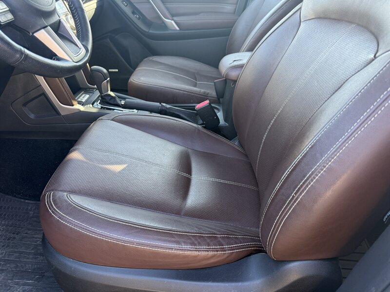 Step inside the 2017 Forester, and you will find a well-designed interior that prioritizes comfort and functionality. The cabin is spacious, with ample headroom and legroom for both front and rear passengers. The Touring trim comes standard with premium leather upholstery, elevating the interior's overall aesthetic. The front seats are heated, ensuring a comfortable experience during cold weather, while the rear seats can be folded down to expand the cargo space for larger items.