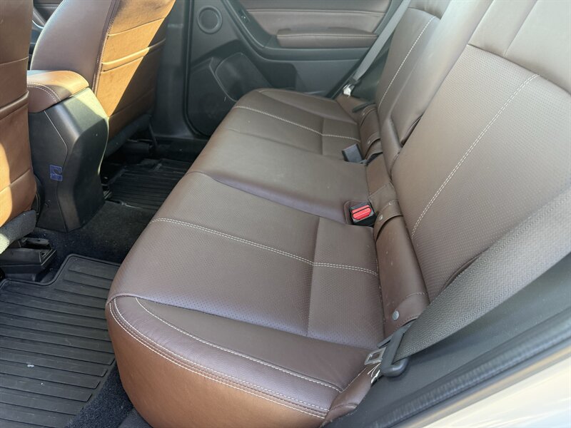 The exterior of the Forester is characterized by its rugged yet refined design. The vehicle features a bold front grille flanked by stylish halogen headlights, providing excellent visibility in low-light conditions. The 2.5i Touring is equipped with 18-inch alloy wheels that enhance its sporty appearance while ensuring a smooth ride. Additionally, the roof rails add practicality, allowing you to carry extra gear for outdoor adventures. The rear features a convenient liftgate that opens to a spacious cargo area, providing easy access to your belongings.