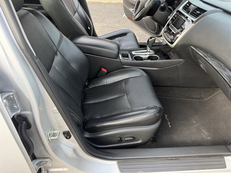 2018 Nissan Altima 2.5 SL powered by a 2.5L I4 producing 179 hp and 177 ft. lbs.; the vehicle is in excellent overall condition and has a clean CARFAX report. Factory-equipped features include leather-appointed seating with heated front seats and power-adjustable driver seat with lumbar support, dual-zone automatic climate control, push-button start with Intelligent Key and remote engine start, touchscreen infotainment with navigation, Bluetooth and USB inputs, steering-wheel audio controls, rearview camera, ABS, traction control, multiple airbags, blind-spot warning and rear cross-traffic alert, alloy wheels, power windows/locks/mirrors and cruise control.